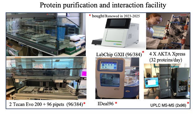 Le service de production et purification de protéines est ouvert depuis 2004. Il est reconnu par plusieurs labels nationaux : IBiSA, AMU et FRISBI. Il propose un portfolio de protocoles automatisés (format 96 ou 384) qui couvrent l’ensemble des étapes du clonage, de la production et purification de protéines ainsi que l’étude in vitro des interactions protéine-protéine, protéine-peptide ou protéine-ADN. Depuis son lancement, plus de 10.000 protéines ont été produites pour nos clients, nos collaborateurs ou nos partenaires dans des réseaux nationaux (treize ANR comme partenaire ou sous-contractant) ou internationaux (douze réseaux européens). La plateforme est co-auteure de quatre-vingt publications et enseigne régulièrement certains de ses protocoles dans des formations locales (Polytech, Plinius), nationales (FRISBI, INSERM) et internationales (EMBO).