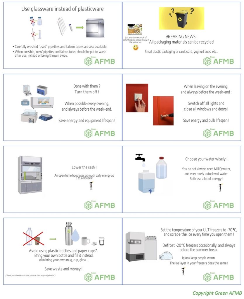 Dans l’intranet du laboratoire vous trouverez: la charte Green AFMB en français et en anglais, les comptes rendus des réunions du collectif, et divers autres documents.